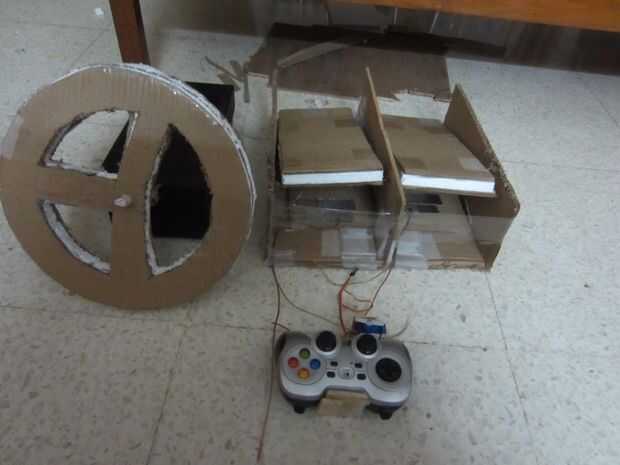 Este proyecto permite animales domésticos para alimentar a un ritmo constante que no te levanta más de un dedo. Hay una rampa en la caja que permite que los alimentos entrar en la rueda que es accionada por un servo que distribuye comida a su mascota