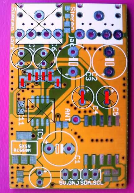 Solo auriculares se sueldan, se omite el LM4880 chip, son un puente sobre las resistencias de 20 KOhm.