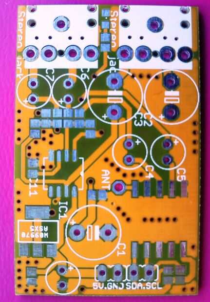 Se trata de una radio FM pequeña basada en el chip del receptor Philips TEA5767 estéreo FM.Características:El amplificador de audio es el LM4880 Texas Instruments (NSC)Potenciómetro de estéreo se utiliza para controlar el volumenLa radio tiene dos bo