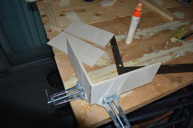 Cortar las piezas para la caja exterior de 1/4 (6 mm) x 3,5 "x 36" hoja de madera contrachapada. Unir la parte inferior y los dos lados pero no agregue la pieza superior todavía.