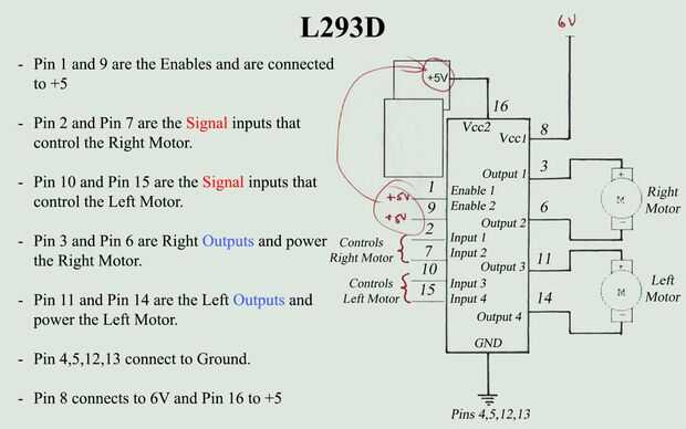 PIN 6 del Chip L293D se conecta al Motor adecuado