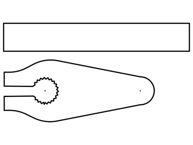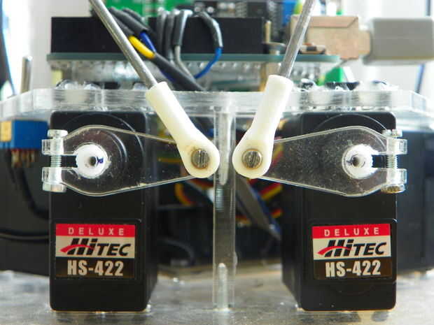Cortar 6 pedazos de brazos de servo de archivo servo_arm.dxf. Agujero de taladro en extremo con la dimensión correcta para poder atornillar allí Tuerca Perno de la rótula. En el otro lado taladro a través del brazo, lugar allí la tuerca perno utilizado para la fijación en el servo. Esto puede verse en una imagen proporcionada.