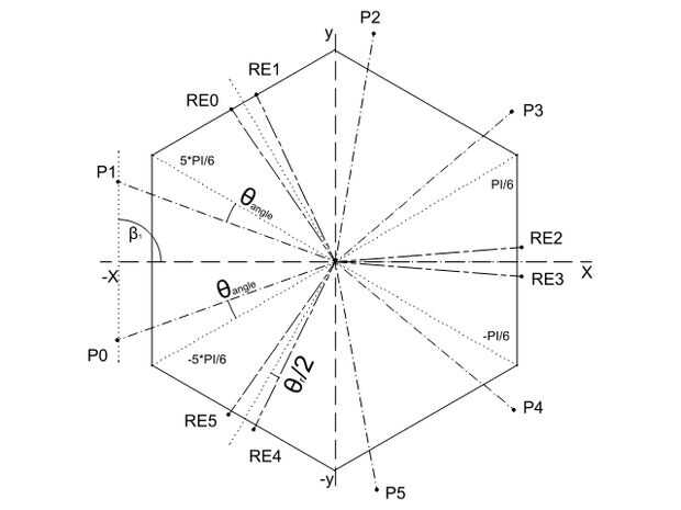 las ecuaciones para x y puntos de posición y de rotación del servo en la base y plataforma de enganche, tienen que ser specificall calculado con respecto a la orientación deseada del eje x. Es sólo básica goniometría, siempre imagen puede ayudar a entender estas ecuaciones.