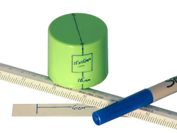 Tomar la tapa de la cadena de tontos. Mida y marque las ubicaciones de recorte.