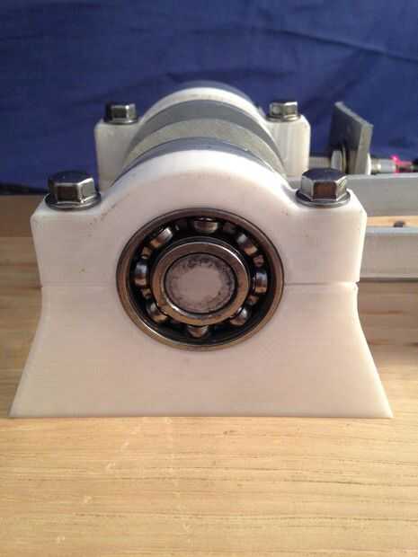 3. montar los soportes de cojinete principal sobre la base de madera. Necesidad de utilizar un toque físico en las piezas impresas 3D, si el agujero es del tamaño correcto, luego el perno debe ser capaces de forma no es en las roscas de la primera vez que entra.