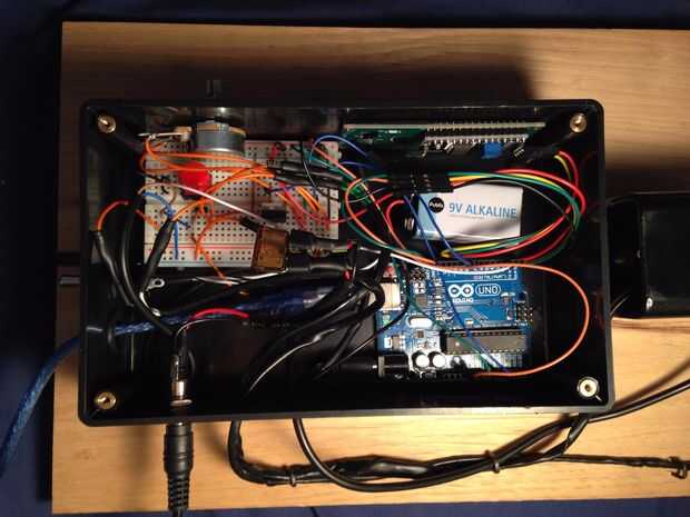 El sensor de efecto hall es una entrada de Arduino que le indica la posición de la manivela. Luego cuando el momento es adecuado, el arduino envía una señal en las patillas 9 y 10 que van a los dos transistores. Estos transistores actúan como relés o 24V y los dos solenoides. También hay diodos en los solenoides para que no haya ninguna tensión posterior que puede dañar algunos componentes. La pantalla LCD es una salida que indica las RPM del cigüeñal. Consigue los cables 5V y tierra y también las dos patillas del bus I2C. El potenciómetro es una entrada analógica que va al pin 1 y varía el voltaje en el arduino. He puesto un interruptor en la fuente de 9V para el arduino para que puedo convertir el sistema de encendido sin necesidad de abrir la caja. También puse un bloque de fusibles en el 24V de entrada por razones de seguridad para que no se quemen los cables.