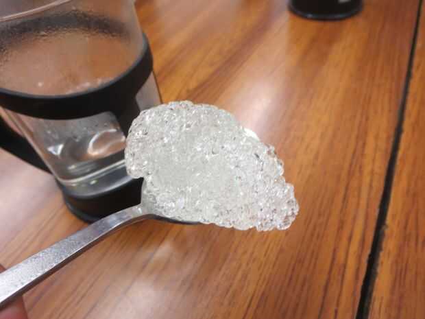 El agua todavía está muy caliente, así que no saque con las manos y usar algo como una cuchara. Todo pega bien, por lo que podrá salir en un terrón.