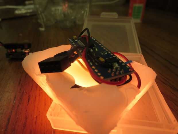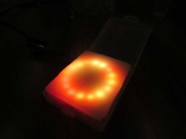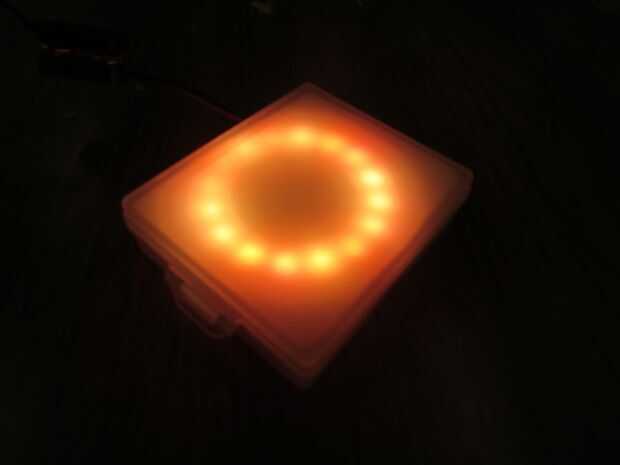 Tenía un regulador de repuesto y el anillo de NeoPixel, había compuesto por otro y lo empujó directamente a la InstaMorph. Hizo un buen efecto de iluminación agradable, difunde la luz y se mantiene cómodamente en la caja.