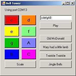 Puede hacer clic en los botones de timbre individual para tocar una melodía. Opcionalmente hay botones para jugar escalas, melodías preprogramadas y también un cuadro de texto para entrada de texto libre.