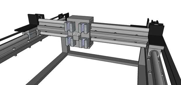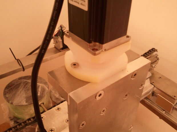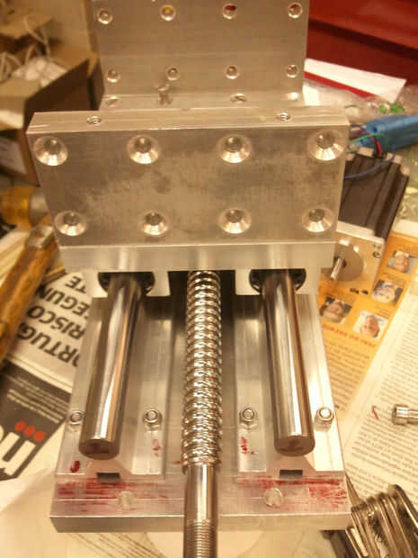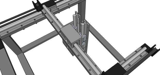 El eje Z que se utiliza en esta máquina tiene un sistema de transmisión y guía poco ortodoxo. El sistema de guía se monta de una manera que permitirá que el eje Z para la gama de 22 cm. Se trata de un gran valor para CNC pequeño como éste, pero fue construida a propósito para permitir el objeto grande impresión 3D. Cuando el CNC está en acción la cama CNC es levantada a la altura adecuada.