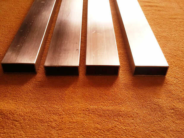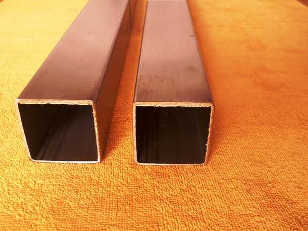 -Cortar 4 tinas de acero inoxidable cuadrados con 50X50x250mm que funcionará como los pilares verticales del marco de la