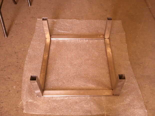 3 - Soldar las 4 tinas rectangulares que hacen que la parte inferior del marco. Tenga cuidado de alinear los tubos perfectamente. Siguiente soldadura 4 columnas verticales y finalmente el 3 cambio de nombre top los tubos de un marco abierto.