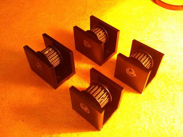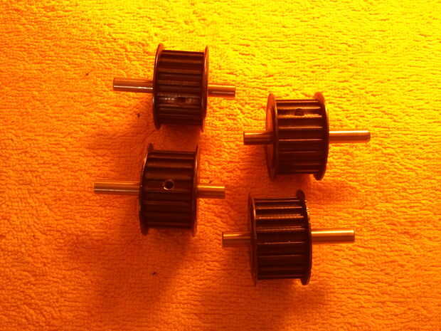 -Preparar las poleas por tornillo macho M4 (3 agujeros espaciados 120 grados)