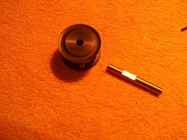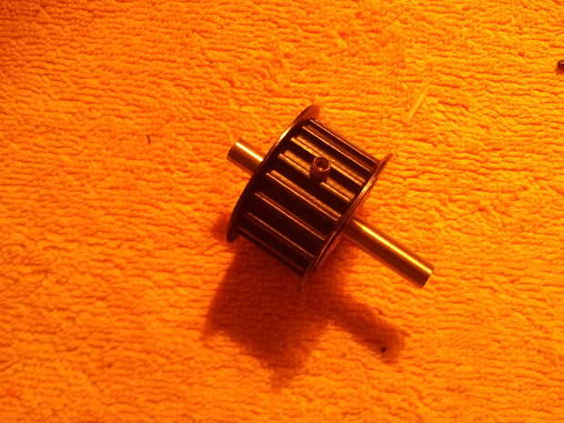 -Taladre un agujero en el centro de la polea para permitir que el eje pase (orificio de diámetro 6mm)