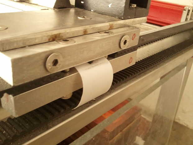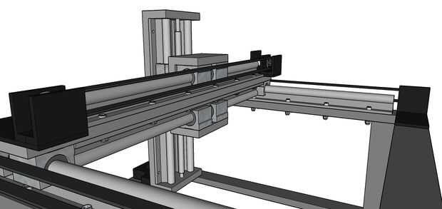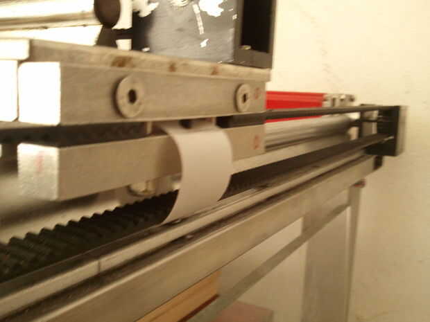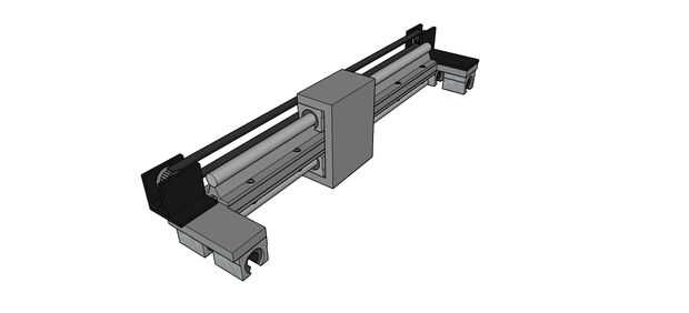 El sistema de transmisión de eje X está compuesto por un sistema de poleas y correa dentada. El sistema de transmisión de eje X unidades soporte de la herramienta derecha e izquierda. El sistema implementado no tiene ninguna reducción, estos significa que la polea de arrastre es el mismo diámetro que la polea tensora. No tengo ningún problema de rendimiento con esta configuración.