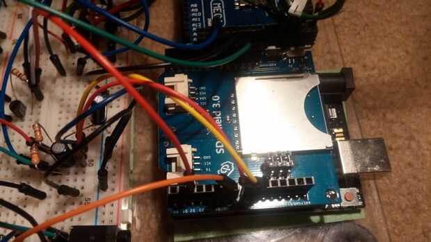 Estoy usando el Uno para jugar los archivos de música a través de un escudo de SD. Estoy usando la biblioteca SimpleSDAudio para reproducir los archivos estéreos de la ASF a través de salidas PWM 9 y 10. Encontré a un viejo auriculares que yo soldar terminales de conexión en. Se trata de la salida de audio para conectar altavoces autoamplificados para. Se conecta a la placa y se cablea a salidas 9 y 10 a través de algunas resistencias y condensadores como se muestra en el ejemplo de SimpleSDAudio Base mínimo. Resistencia de condensador---10 k PIN 9---100 uF---canal derecho entrada jack---resistencia de 1 k---tierra. Pin 10 está conectado la misma manera para el canal izquierdo en la toma de entrada (si desea supervisar la pista sólo voz).