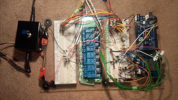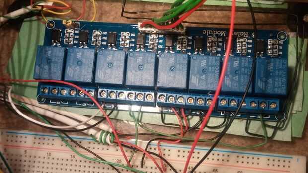 Al azar el intervalo de cambio de polaridad para el traste se mueve de una manera más natural, y también he añadido relés 7 y 8 en la activación al azar para controlar más luces.