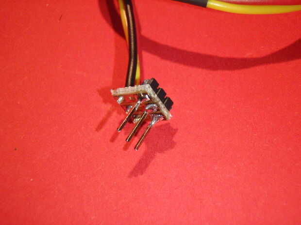 Primero lo necesario para preparar el cable de conexión. Llevar tres cables, tres pernos y un trozo de placa de prototipado con líneas de preparados de material conductor. Elegí este tipo: el pin del medio es valor analógico y otros son VCC y GND.