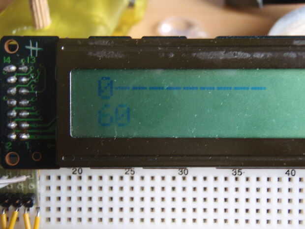 I modificar LCD y analógica lectura ejemplos para ver el valor. En primera fila es el valor en el pin A0 y en la fila siguiente es tiempo en milisegundos.