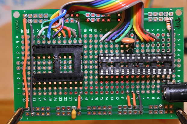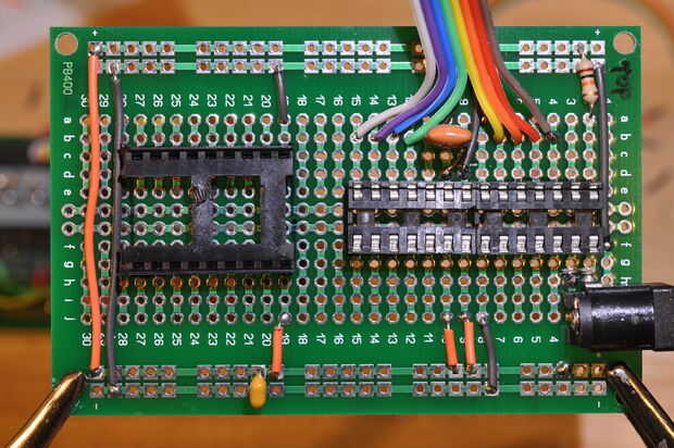 De la soldadura en el bus de datos como se muestra. Observe cuidadosamente cómo los cables están fuera de orden en la pantalla en comparación con el ATMEGA.