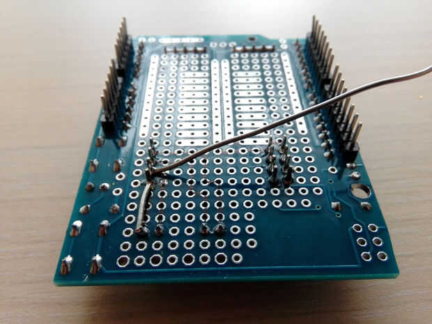 Te darás cuenta que tendrás que hacer un ángulo de 90 grados girar en el segundo pasador. te recomiendo primero hacer una bolita de soldadura en cada 90 grados girar, punto y soldadura de un punto a otro. Una vez que termine el segundo pin de soldadura, debe tenerlo como mina (segunda imagen).