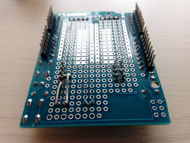 Ahora el duro... ejem... parte de la "diversión". Tenemos que conectar los pines de la ADC para las clavijas de los terminales de tornillo. Esto lo podemos hacer mediante algunos hilos, pero he decidido hacerlo con soldadura. Así que tome algunas de la soldadura (en forma de un alambre fino), soldar un extremo con el conector ADC (mantenga el alambre de la soldadura en las bolas de soldadura hasta que se enfríe), luego alinean el cable con la línea de marcador negro que dibujamos. Cortar la soldadura con el soldador y soldadura el extremo libre con el conector de terminal de tornillo.