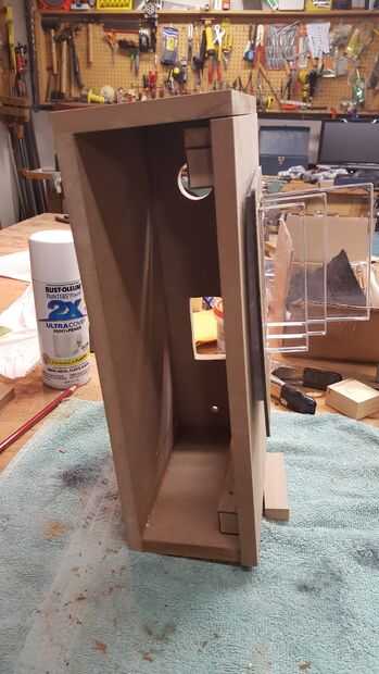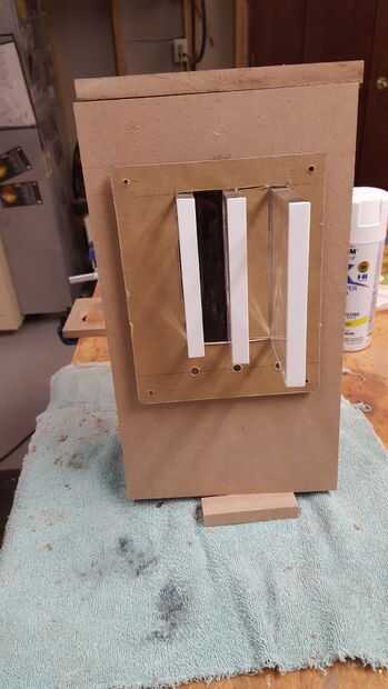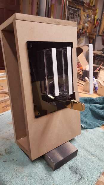 Material: acrílico 1/2" y El panel negro es de 1/8" negro acrílico. El acrílico es fácil corte y lije. También fácil de pulir los bordes con el aumento del papel de lija suave, luego lana de acero y una rueda de pulido y compuestos para plásticos.