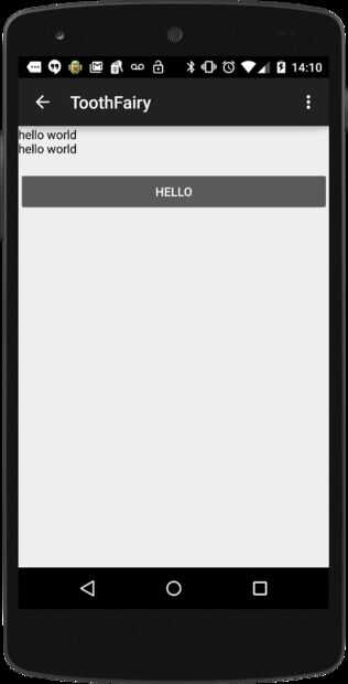 Usted verá un botón cada vez que presione, imprimirá "Hola mundo" en un campo de texto encima del botón. Una vez que el campo de texto 7 líneas parará cada vez más grande y se convierten en desplazamiento.