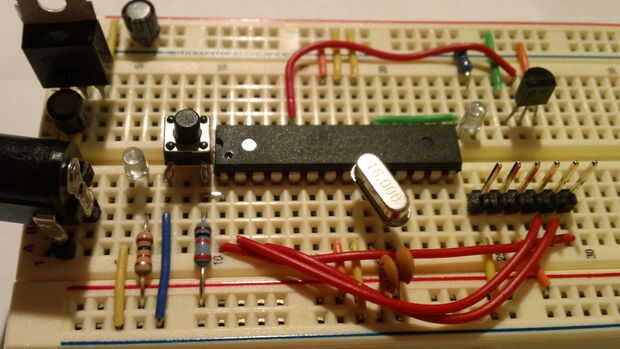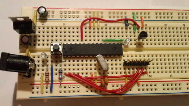 • El segundo (medio) 24 pin a pin (pin analógico 1) en el Atmega de alambre