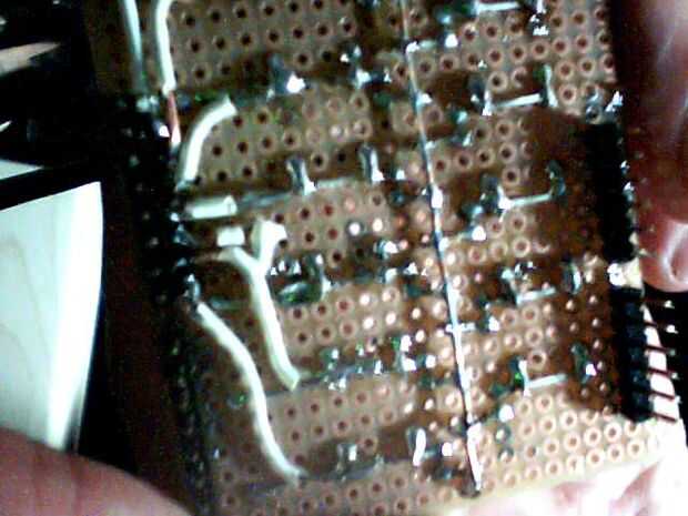 Utilice alambre recubierto para conectar las patas largas de los LEDs a los pins! Si nos fijamos en la parte trasera de tu escudo de Proto, empiezas en la parte superior de RIGHT(!!!) a la izquierda. Tierra de LED (el alambre en el medio), minuto LED 1, minuto 2 LED y así sucesivamente...