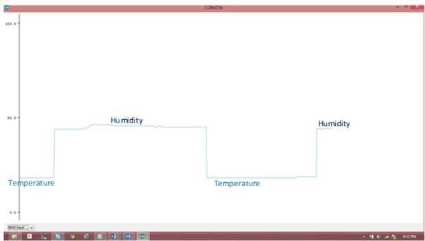 Como ya han notado, no diferenciamos entre la temperatura y la humedad lecturas sobre el Plotter serie que aparecen en la misma línea. Básicamente no podemos leer dos lecturas diferentes simultáneamente. Creo que la herramienta es parcial por el momento, pero justo lo suficiente para visualizar datos de los sensores individuales en lugar de varios. Esperemos mejorar pronto.