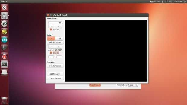 Vamos a utilizar la imagen de "FabScan Ubuntu Live DVD" que fue creada por Mario Lukas. Se puede descargar desde aquí, esta imagen ha preinstalado el software de FabScan. Puede grabar la imagen en una unidad flash con Win32DiskImager (enlace de descarga) y utilizarlo sin necesidad de instalar el sistema operativo linux en su sistema. Puede encontrar más opciones para otros sistemas operativos aquí.