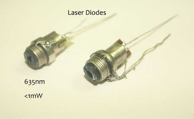 1.2 x diodos láser (he utilizado un láser diodo de un puntero láser rojo - 635nm y < 1 MW)