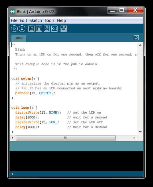 Si vas a utilizar el ejemplo Blink, conecte un LED en pin 13 en su tabla. La pata larga va al pin13 y el corto va a tierra.