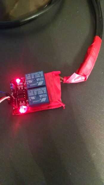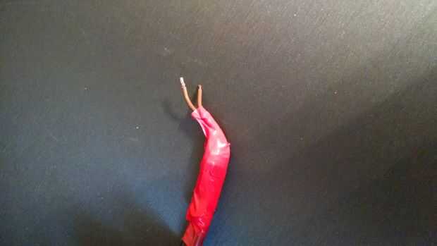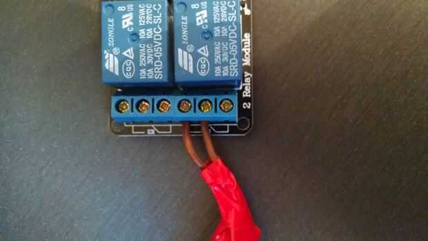 Ahora quite la manga de goma externa procurando no cortar la manga de los alambres, no queremos ningún hilo mostrando! A continuación cortar el cable positivo (uno rojo) y quitar unos pocos milímetros de mangas en cada extremo. Inserte el alambre expuesto en los puertos correctos del relé como se muestra en el diagrama y las fotos de arriba. ASEGÚRESE DE QUE NO ES VISIBLE NINGÚN CABLE! Para seguridad envolver los cables de cinta aislante y cualquiera de los lugares que podrían ser vivos en el relé, como los tornillos de la cubierta.