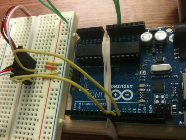 Asegúrese de que la conexión del cable blanco en el servo es fueron los pernos en el Arduino.