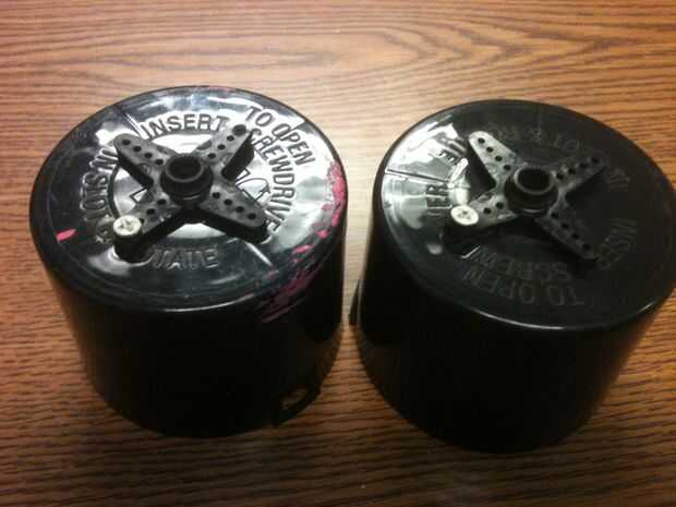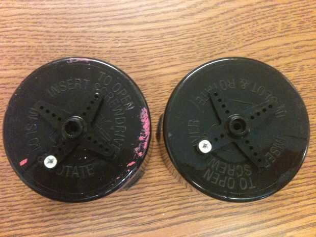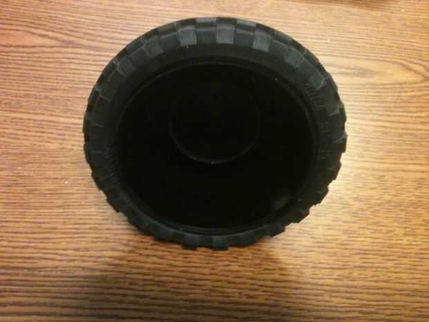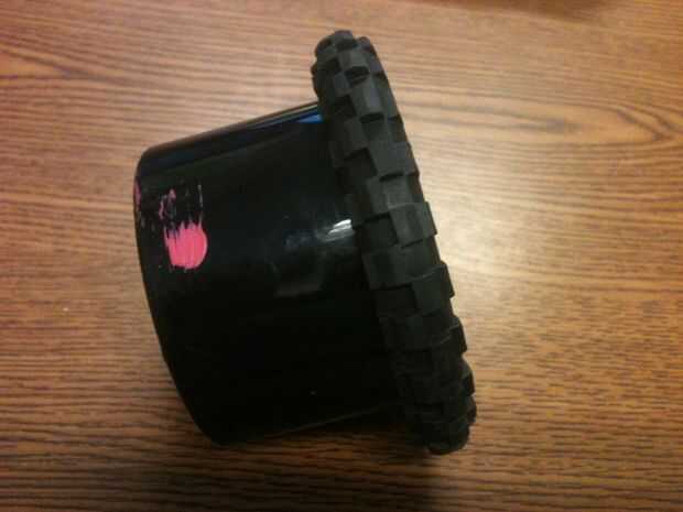 Coloque los tapones en el brazo de servo con dos tornillos. Y el uno en el centro el servo. No necesita perforar un agujero aquí, el plástico es fino para los tornillos ir a través. Luego agregar la tracción a las tapas, puede ser cinta aislante. (Tengo uso neumáticos de goma de un lego)