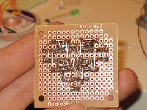 Terminarás con los pares que cubre todas pero 3 de las posibles combinaciones que te darán 6 conexiones sólidas. Así que asoman con un 3v + - alambre y ver los diferentes LEDs iluminan uno por uno.