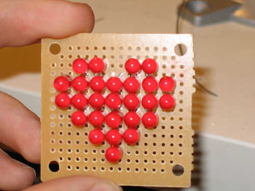 Los próximos instalados alinean en la misma dirección en los lados opuestos de la LED del medio fondo. Doblado la + cable de la derecha entre la parte inferior centro de LED y su compañero. Conexión al - cable del LED izquierdo inferior y la forma exterior de la C izquierda. Usted entonces toma la parte inferior izquierda del LED + plomo, dobla la parte inferior derecha LED de - plomo y entonces en el frente externo C forma.