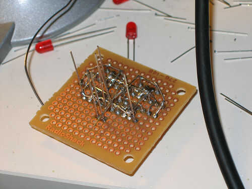 El final me llevado doblado el plomo a la mitad inferior + plomo y la - sobre la forma exterior izquierdo C. Ahora clip cualquier perdida conduce y asegurarse de que no hay ningún cortos.