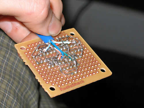 Vas a querer probar las conexiones desde el otro lado del cable. Esto hace fácil tocar combinaciones aleatorias a las pilas de 3v.