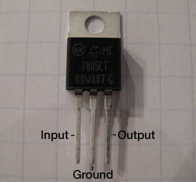 La siguiente foto es un regulador de voltaje 7805. Los pasadores no están etiquetados e investigación a menudo el internet para obtener las conexiones correctas.