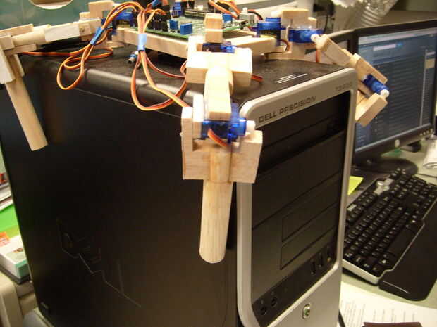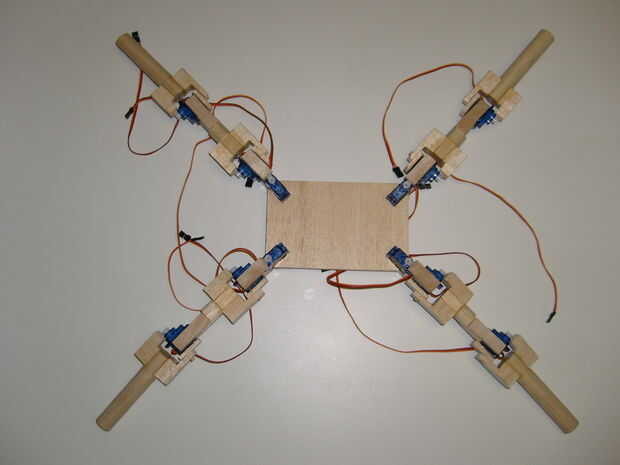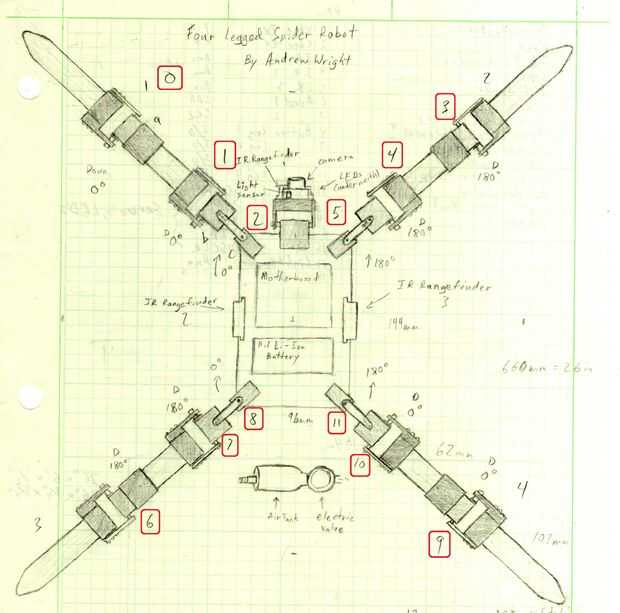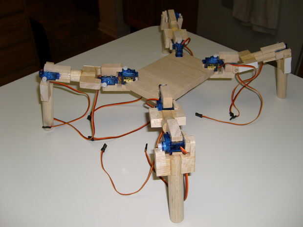 Si usted tiene un diseño mejor, adelante. Elegir este diseño porque el robot tiene la capacidad de girar su pierna 180 grados por lo que puede caminar hacia abajo.