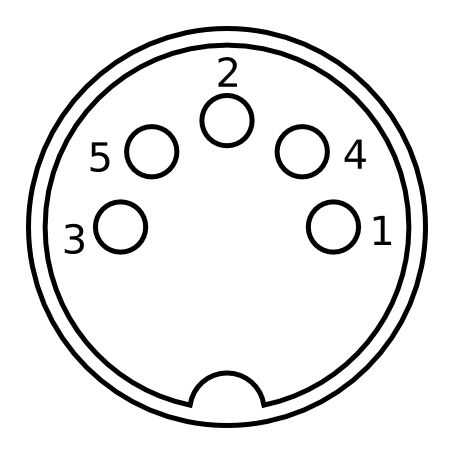 Para este tablero usé un conector DIN que puede ser soldado directamente a él. Si desea utilizar otro Asegúrese de conectar los pines con los números en el tablero con los pernos según en el conector. En la foto aquí los pasadores se ven desde la parte trasera (donde de la soldadura).