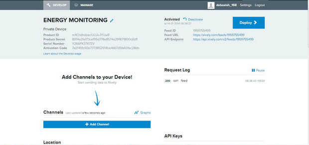 URL, punto final de API (ID de la alimentación se utiliza en código ARDUINO) - Añadir canales (I