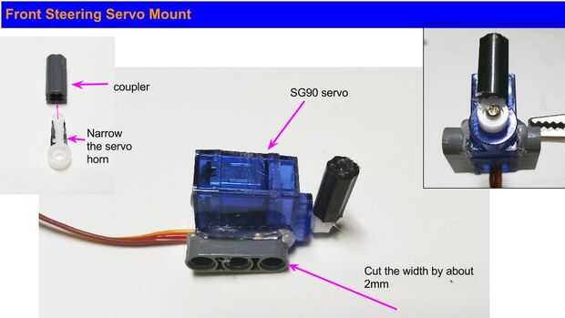 Para el frente de la dirección Asamblea, usé un servo SG90 conectado a piezas de Lego 3 agujeros por el pegamento. Para cumplir con el requisito de anchura, tuve que cortar unos 2mm de la anchura de las piezas de Lego de 3 agujeros con una navaja. (PRECAUCIÓN: una lámina de cuchillo de utilidad es muy afilada y puede causar laceraciones graves.)