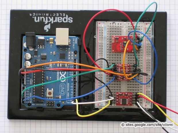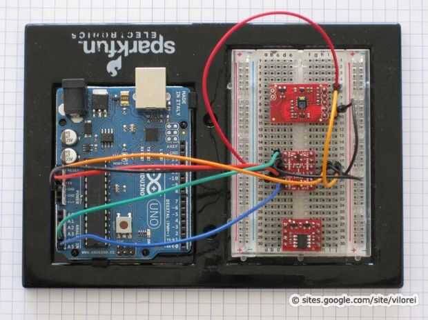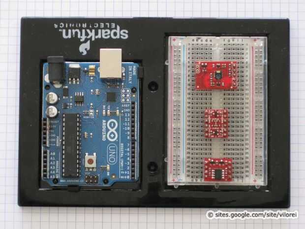 3• potencia las conexiones entre el sensor de color y convertidor de nivel de lógica y 5V el LED incorporado
