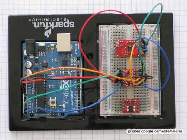 2• energía y conexiones I2C entre Arduino y lógica nivel conector