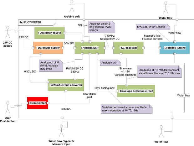 Aquí están 3 diagramas para presentar los diferentes componentes del caudalímetro nuevo: