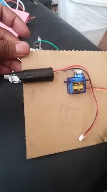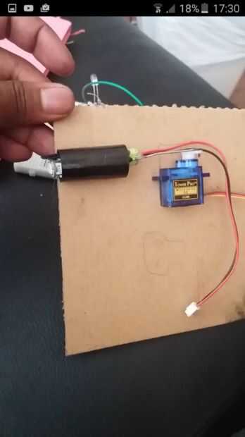 línea de un seguro con pegamento caliente. Conecte el servo a su arduino y prueba, tome nota de las dos posiciones que usted necesita. mía, cuando en 20, de 165.